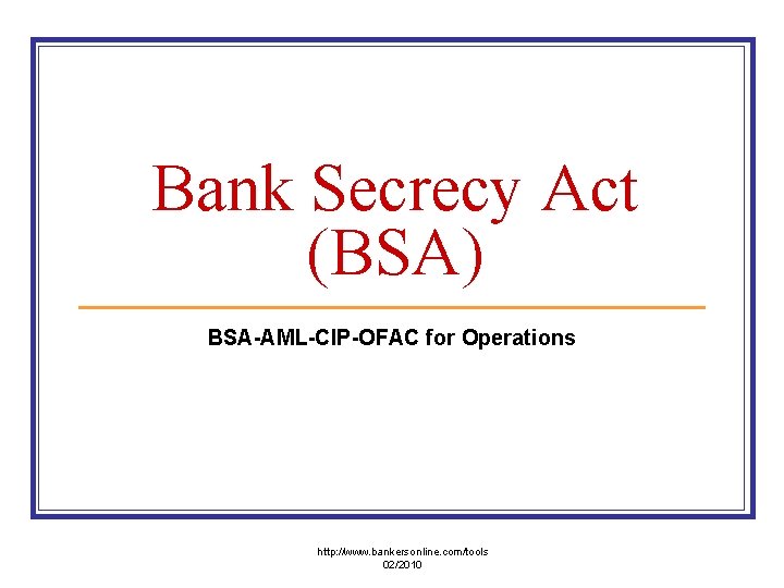 Bank Secrecy Act Bsa Bsaamlcipofac For Operations Http